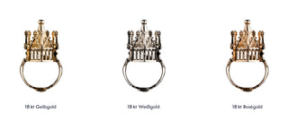 Die Reproduktionen des Erfurter Hochzeitsringes sind in 18 Karat Gelbgold, 18 Karat Roségold, 18 Karat Weißgold und in 925 Sterlingsilber erhältlich. Weitere Legierungen können auf Anfrage gefertigt werden. Das exklusive Highlight der Masterpiece Edition ist die goldene Klangkugel im Inneren des Miniaturtempels.